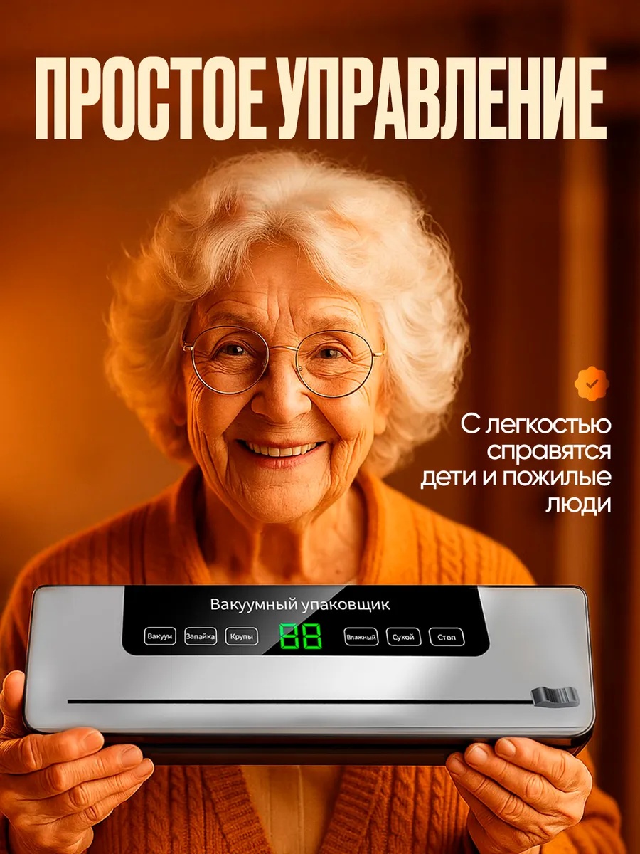 Очень полезная вещь на кухне,с ним работать одно удовольствие,все герметично,вакуумирует даже продукты с жидкостью внутри.