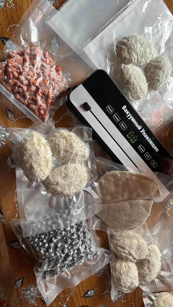Я довольна покупкой!Теперь хранение заготовок не проблема:упаковал продукты и размораживаешь по мере необходимости.Оцениваю товар на 10 из 10.